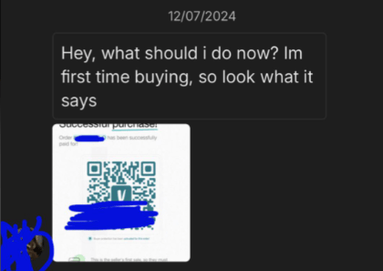 QR codes are also increasingly being used in scams—you may receive an image or message asking you to scan a code for tracking, payment, or to “verify your account.” Never scan QR codes sent by strangers on Vinted. If a seller or buyer requests this, it’s almost certainly a scam. Below is an example of what these QR code messages may look like.